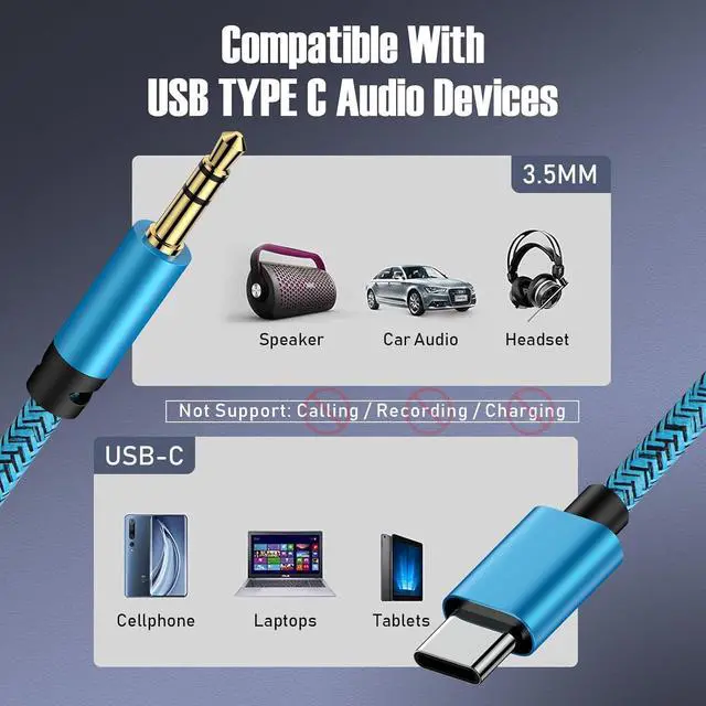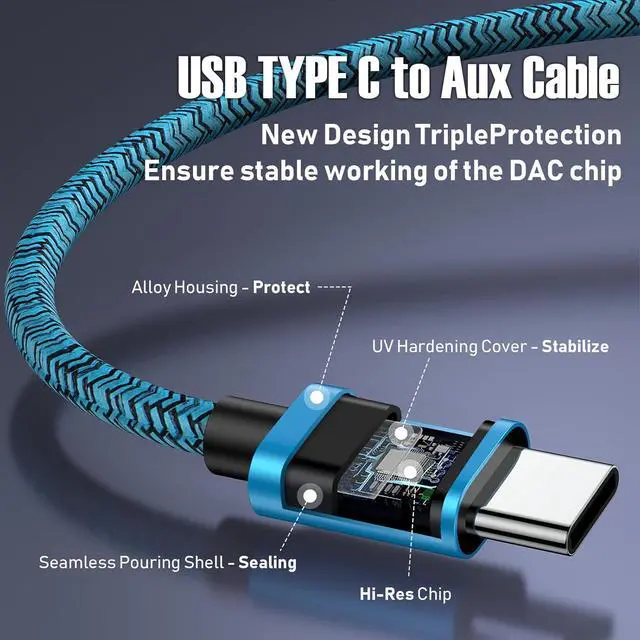 Can bear 10000+ bending test. Premium Aluminum housing makes this c 3.5 cord more durable nylon braided type c cable adds additional durability and tangle free. 2Pack 3FT Type C Aux Cord Galaxy S25 Aux Cord for Android with a length of 1M can meet all kinds of daily use need. You don't have to worry about the distance you can enjoy a high-quality music feast as you like both in car and home. We offer 1 year warranty for our usb c to aux cable If there is any problem feel free to contact us.