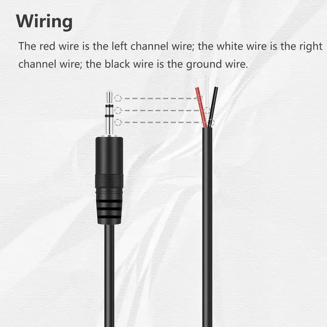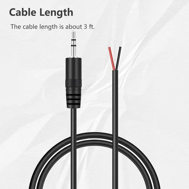 Cable length: 3 ft 2 pcs 2.5 mm stereo male ends to bare wire cable in the package.