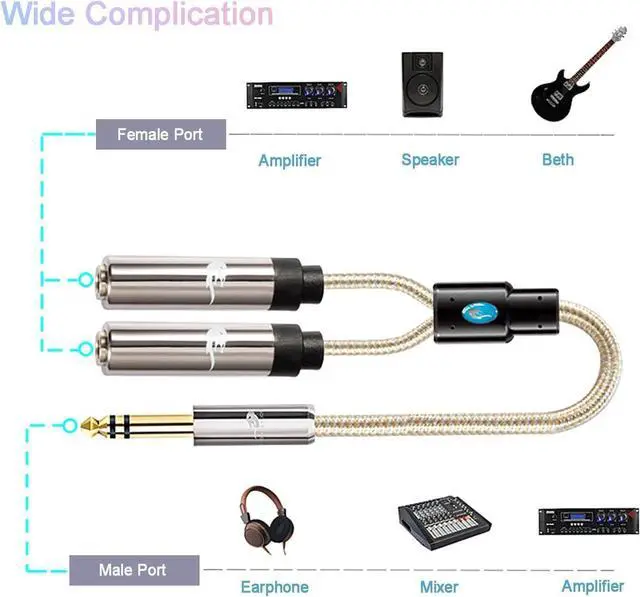 Function: 1/4 Inch Stereo Plug to Dual 1/4 Inch stereo Jack Y Splitter Cable This cable is designed to split (duplicate) one stereo into two stereo.
