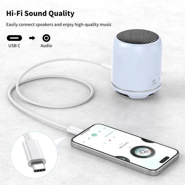 Type-C phones(Note: not support for connecting a mobile phone with a 3.5 mm port to a headset with a USB C port)Audio Cable for iPhone 16Our USB Type C to 3.5 mm Aux Cable has completed MFi certification requirements. This iPhone 16 aux cord built with original terminal and smart chip ensure completely and securely connect with your devices.