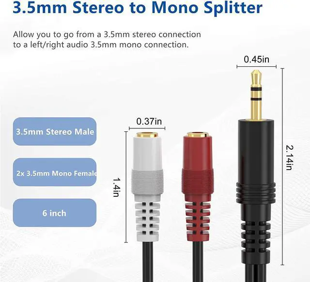 Allow you to go from a 3.5 mm stereo connection to a left/right audio 3.5 mm mono connection. Connectors are made of high quality gold-plated brass. Copper wire for higher signal transmission and extremely low signal loss. The soft PVC wire is very flexible and durable not easy to entangle and can be easily wired placed and installed under any circumstances. Used for ecording equipment speaker headphone bluetooth and more.