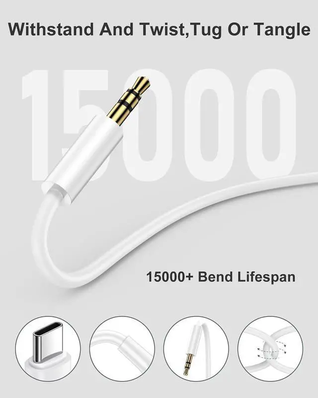 Wide Compatibility- This USB C to 3.5 mm audio Aux cable Compatible with most of the type c device: iPhone 17/17Pro Max/Air/17 Pro/16/16e/16 Pro Max/16 Plus/16 Pro/15/15 Pro/15 Pro Max/15 Plus Galaxy S25 Ultra/S25+/S25/S24/S24 Ultra/S23/S23+/S23 Ultra/S22/S22 Ultra/S21/S20 Ultra/S20/S10/S9/Note 20/Note10/Z Fold 7/Z Flip 7 Google Pixel 10Pro XL/10/9/9Pro XL/9 Pro Fold/8/8Pro/7/7a/7Pro/6/6Pro/6a/5/5a/4/4a/4xl/3a New iPad/Pro/Air/Mini (usb c port) P30/P40 Mate 20/30 and pro Xperia 1/ Xperia 5/Xperia XZ3 LG and more. Durable and Portable- The iPhone 17 aux cord usb c is made of premium stretch TPE material it can withstand up to 15 000+ bends and has excellent resistance to wear. And it is soft lightweight and easy to carry you can put it in a backpack or handbag. No worry about the winding knot. What We Offer- We provide 2* 3.3 ft Aux to usb-c cord A Worry-free 1-year warranty and 7x 24 Hours friendly customer service. If you have any questions please feel free to contact us.