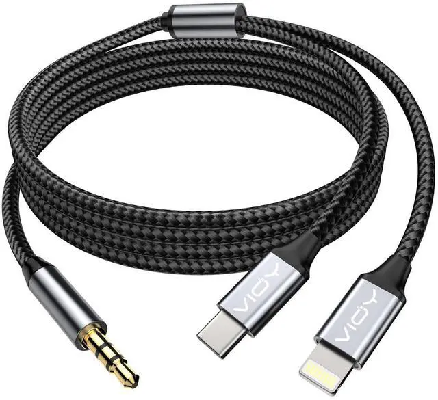 Durability: This type c and iphone aux cord is made of corrosion-resistant and oxidation-resistant aluminum shell and 24K gold-plated plug which is not only heat dissipating but also stylish in appearance. What' s more combined with a nylon braided jacket and a reinforced anti-bend tail design the 3.5 mm audio jack cable can withstand more than 20 000 times of repeated plugging unplugging and bending tests increasing durability and anti-tangling greatly extending its service lifePlay and PlugWithout the need for software drivers and complicated connection modes our iphone aux cord for car easily connects your Type C / Lighitng devices to your car stereo home stereo speakers headphones or any device with a standard 3.5 mm audio jack or Aux-in connector allowing you to enjoy great music anytime anywhere in the simplest way possible