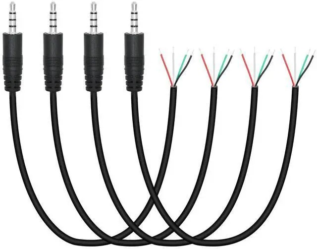 Wiring DiagramPIN 1 - Red wire is the left channel PIN 2 - White wire is the right channel PIN 3 - Green wire is microphone PIN 4 - Black wire is ground. Product features 3.5 mm Male jack to bare wire open end cable perfect replacement of the original 3.5 mm male plug connector audio cable for worn out or broken earphone microphone speakers cable repair. DIY 4 Pin Bare Wire 3.5 mm male jack TRRS 4 Pole 1/8'' bare wire has 1 end of 1/8'' 3.5 mm male jack and the 1 end of 4 pin open end cable for most speakers dvd radios scanners TV box and other 3.5 mm jack audio equipment products.