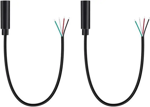 Package contents: 2-Pack 12 inch 3.5 mm stereo trrs female jack to bare wire pigtail speaker wire cord cable.