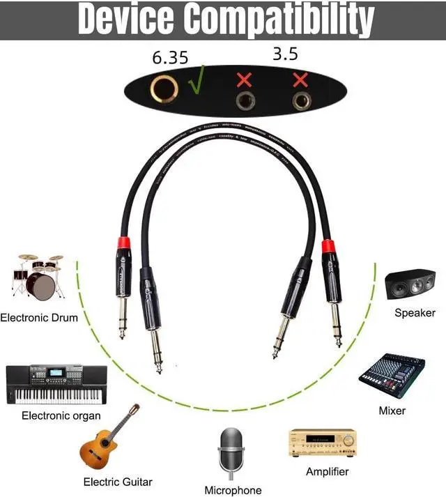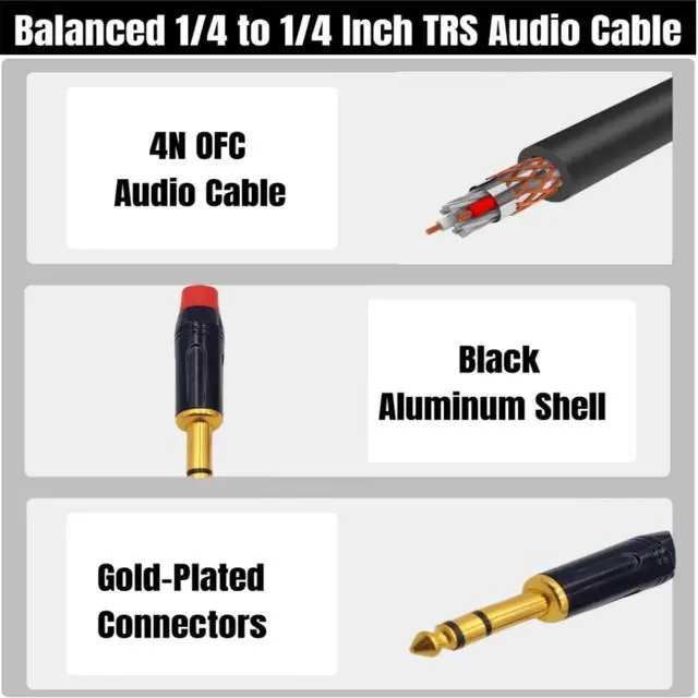 20 AWG 99.99 % Oxygen Free Copper wire ensure high fidelity sound quality Sheavy duty flexible rubber jacket High quality and made by environment-friendly Polyethylene insulation improves high frequency response Coper braid shielding to superior RF rejection and protect against EMI electromagnetic noise. These Patch Cable are? TRS male to? TRS male Rugged metal connectors of this durabl cable feature gold-plated tips and an easy-grip housing for superior signal transmission can be used anywhere a balanced? connection is required. Pro-grade TRS? Patch cable connects your guitar or other instrument to an amplifier or mixing console with a? TRS port such as connect mixers to equalizers crossovers compressors effects units or amplifiers.