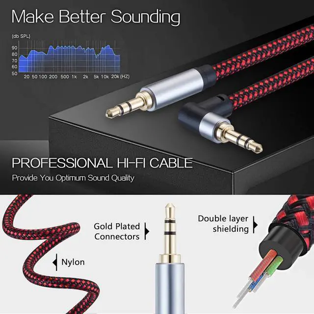 SOUND PERFORMANCE: aux cable 3.5 mm male to male built with oxygen-free copper inside and polished 24k gold-plated connectors aux cord delivers high-fidelity sound and provides optimal listening experience let you enjoy an endless aftertaste music feast NOTEPlease note that the sound quality may be affected by many possible external factors please let us know if there is a problem.