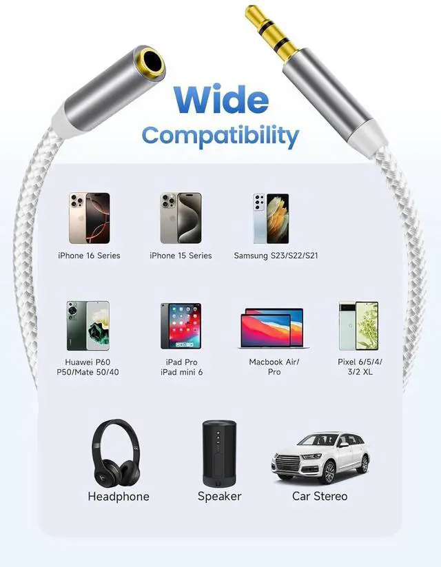 Build Quality: With a 24k gold-plated connector and solid copper shell this male-to-female AUX cable ensures superior conductivity oxidation resistance and stable audio transmission for exceptional sound qualitySound