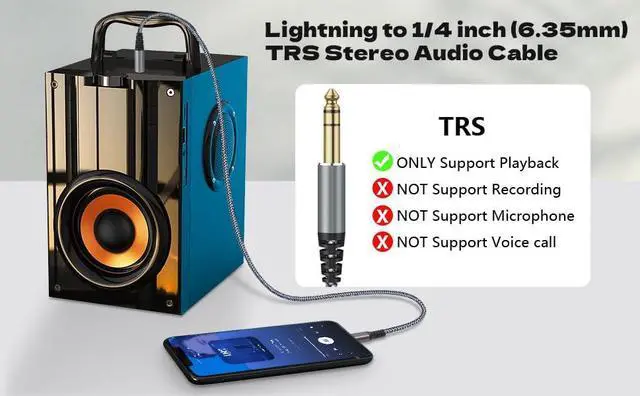 Audio Cable: Transmits audio signal from your i-Phones i-Pad or i-Pod with lightning jack to audio devices with 1/4 Inch ( 6.35 mm) stereo jack like Amplifier Speaker Home Theater Mixing Console etcONLY ONE-WAY