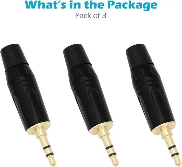 Package contents: 3-Pack 3.5 mm solder plug jack stereo male plug connector.
