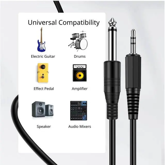 Versatile Audio Connection: Our 1/8 to 1/4 stereo cable easily connects devices with 3.5 mm and 6.35 mm jacks such as smartphones laptops mixing consoles home theater systems speakers guitars keyboard pianos and amplifiersReliable