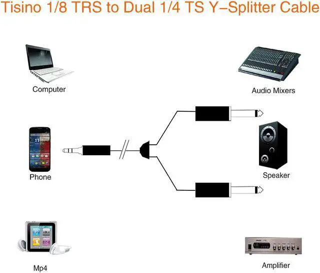 Audio: Experience clear crisp sound with this 3.5 mm TRS to dual 1/4 inch TS mono Y-splitter cable designed for optimal audio performanceWide