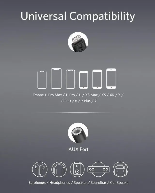 Seamless Compatibility: Lightning to 3.5 mm cable ensures flawless performance with iPhone iPad iPod and more devices supporting clear uninterrupted audio connections.