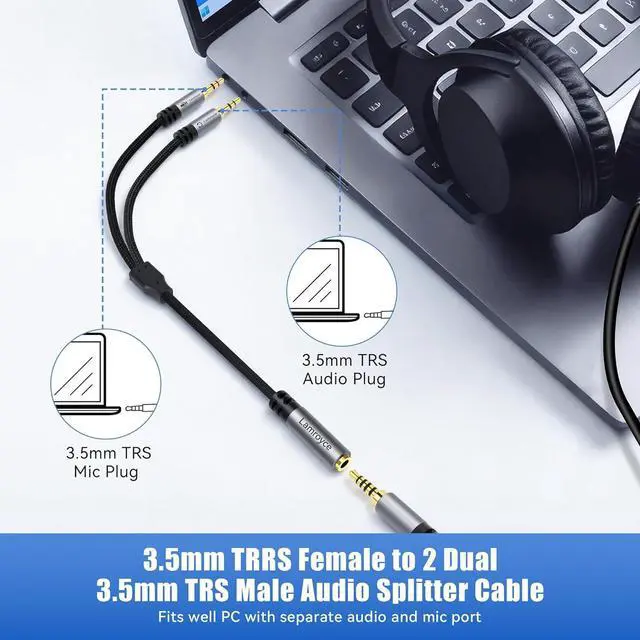 Please note before purchasing: This headphone jack Splitter is only compatible with CTIA standard headphones and is not compatible with CTIA standard and Beats headphones. It does not support OMTP standard headphones. Your computer must be equipped with dual 3.5 mm TRS jacks for separate audio output and microphone input. 2 to 1