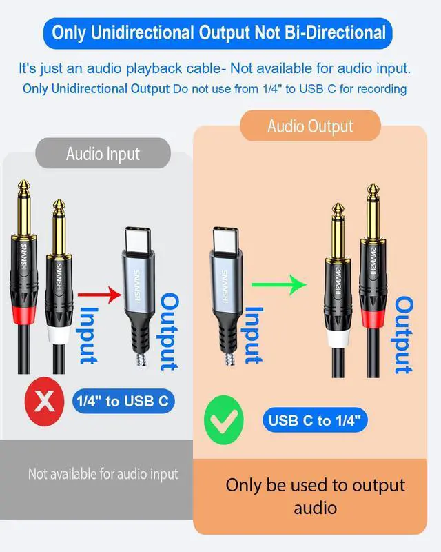 DAC Chip: Built-in high-quality DAC chip supports up to 24bit/96kHz audio sampling rate. Ensures distinct and clear sound quality with low noise floor. Perfect for transmitting stereo audio from your USB-C devices to professional audio equipment without signal loss or static noiseDual TS