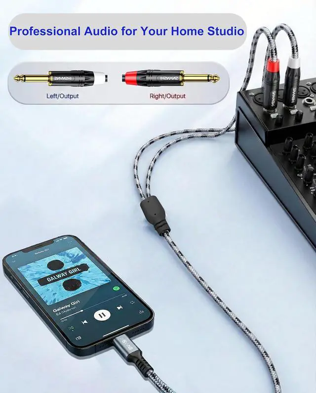 Output (Y-Splitter): This Y-splitter cable splits the USB-C stereo signal into two mono 1/4 TS plugs (Left and Right channels). The length of the bifurcation allows specifically for wide spacing between professional speakers or mixer inputs. (Red/Black color coding helps identify channels)Universal Compatibility Designed for connecting USB-C devices like iPhone 15/16/17 Pro Max Galaxy S25/S24/S23 Pixel iPad Pro and MacBook Air/Pro to devices with dual 6.35 mm (1/4 inch) TS jacks such as amplifiers speakers mixing consoles and home theater systemsBuilt to