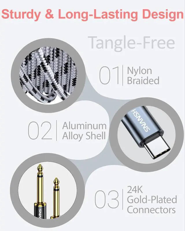 Last: Features a heavy-duty nylon braided jacket and corrosion-resistant gold-plated connectors. The premium aluminum alloy shell effectively blocks external interference. Tested to withstand 15 000+ bends ensuring a long lifespan and a secure tight connection every time