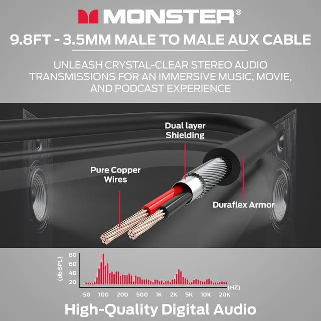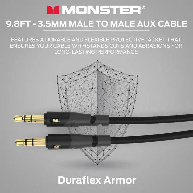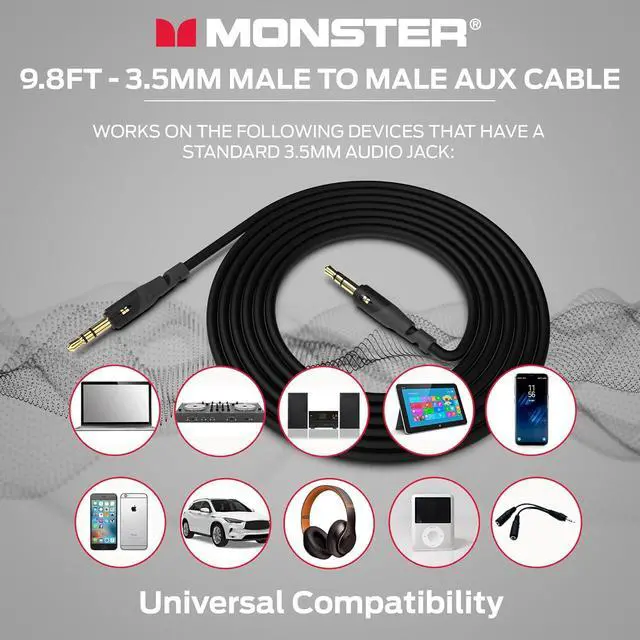 Enhanced Flexibility: With a 9.8 feet length the Monster stereo jack cables provide flexibility for any setup. Whether connecting with your car or home system youll have the reach you need.
