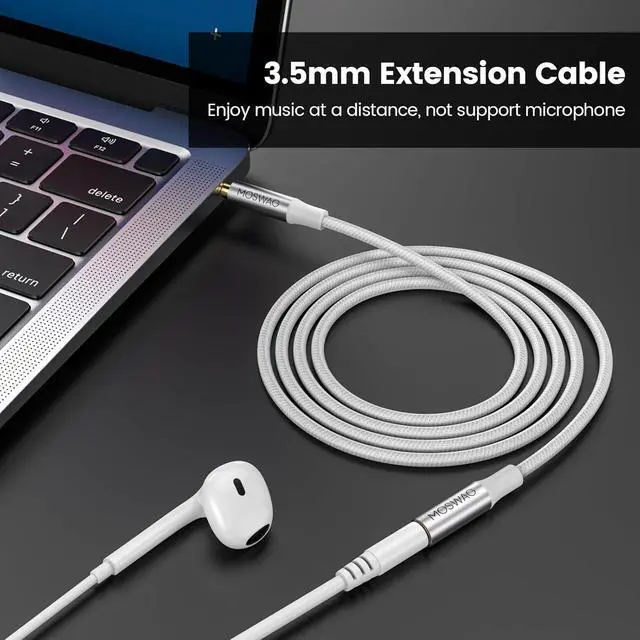 Extension Cable]: MOSWAG 3.5 mm extender cable. 3.5 mm male to female adapter extends the connection between your smarphones tablet or any other 3.5 mm aux port equipped devices to your headphone earphone speaker car stereo or home theater system etc.