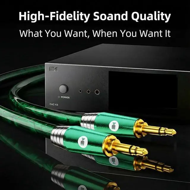 Hi-Fi SOUND QUALITY: Crafted with premium Silver-Plated Copper cores this cable offers superior conductivity compared to standard copper wires. It significantly enhances high-frequency resolution delivering crystal-clear treble rich details and immersive surround sound for a true audiophile experience. CNC-turned copper shell with circular cut design Gold-plated copper terminals with standing repeated insertion and removal corrosion-resistant.; Clear Green PVC Jacket Clear Green PVC JacketThis professional-grade AUX cable employs pure silver-plated conductors significantly enhancing electrical conductivity to deliver pristine audio quality and seamless signal transmission for public address systems and analogue channels.