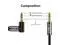 Sound: Corrosion resistant gold plated Metal connecters making the sound signal transmits with minimal signal lossComposition: 3.5 mm Male straight connector on one end and 3.5 mm Male right angled connectors on the other endWhat you get: J&D 3.5 mm to 3.5 mm right angled 10 feet cable and J&D 1-Year Limited Warranty