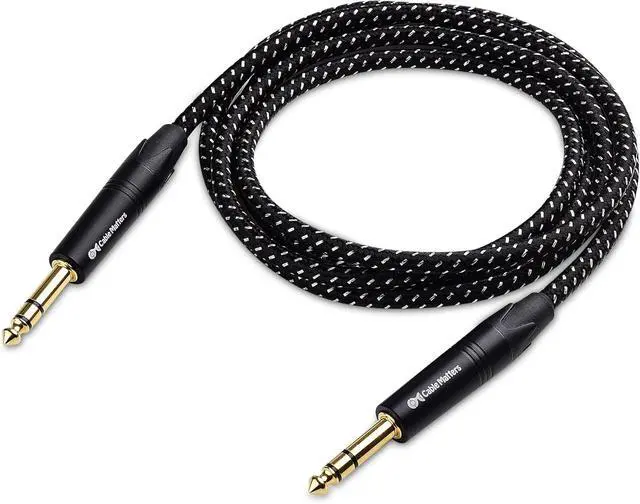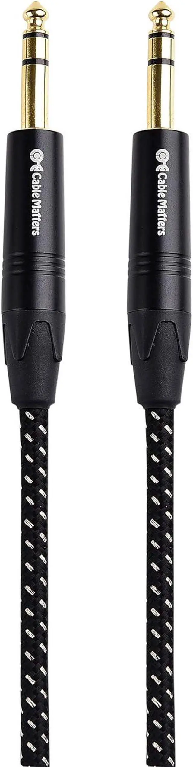 TRS balanced interconnect cable patches equipment with 1/4 inch TRS port; quarter inch cable provides a direct connection between an audio interface and a headphone ampBalanced TRS patch cable with a tangle-resistant cable jacket resists kinking and lays flat for an easy installation; Rugged metal connectors on this stereo patch cable feature gold-plated tips and an easy-grip housingSuperior construction includes oxgyen-free copper (OFC) copper conductors to deliver pristine sound; Wire insulation and overall copper braided shielding protect against EMI electromagnetic noiseBraided cable jacket on this audio snake cable provides a distinctive look in your studio; Flexible and lightweight cable jacket is easy to coil and store when not in useStereo TRS cable is compatible with musical equipment with a 1/4 TRS port such as a foot pedal switch studio monitor audio interface or headphone amplifier