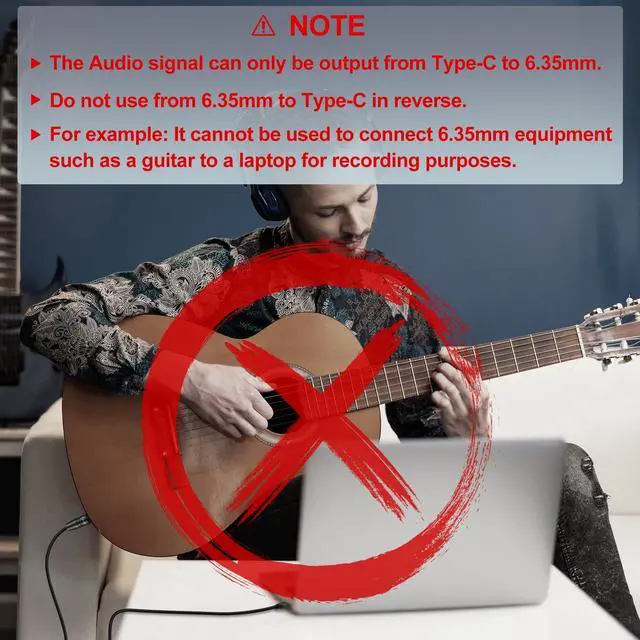 Audio Cable Note: the audio signal can only be output from Type-C to 6.35 mm; do not use from 6.35 mm to Type-C in reverse cannot be used for guitar recordingWide