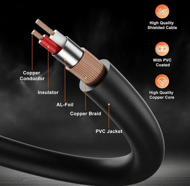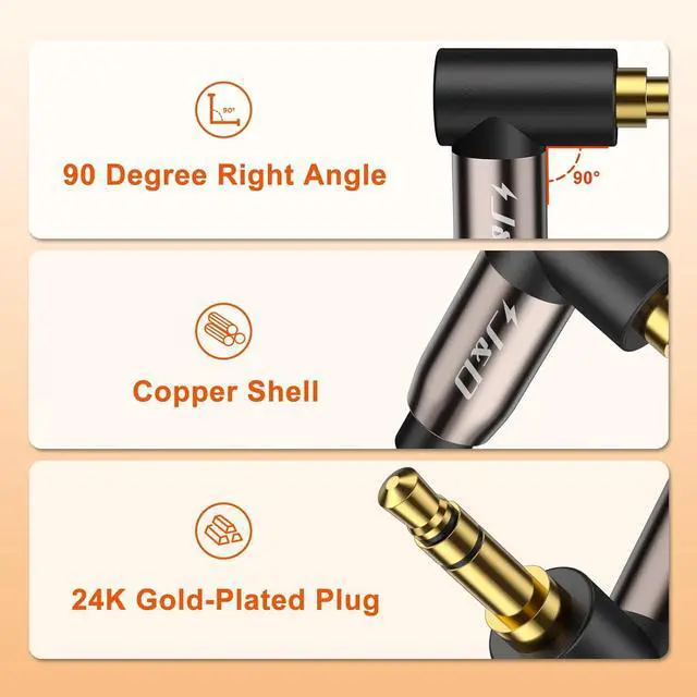Sound: Corrosion resistant gold plated metal connecters making the sound signal transmits with minimal signal lossComposition: 3.5 mm Male right angled connector on both endsWhat you get: J&D 3.5 mm right angled 10 feet cable and J&D 1-Year Limited Warranty