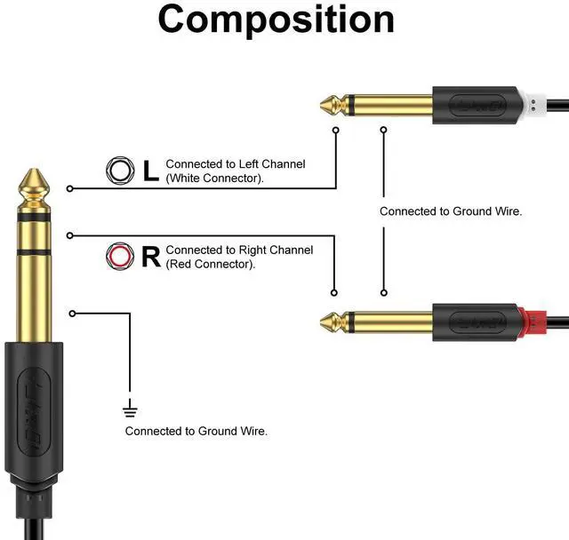 Connection: With dual Male cable connectors it is easy to use the 6.35 mm 1/4 inch TRS audio cable with any 6.35 mm 1/4 inch TS standard stereo left/right output providing premium sound and HIFI audio for your home stereo or theater systemWarranty: J&D 1-Year Limited Warranty