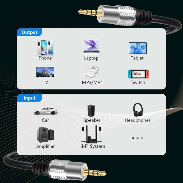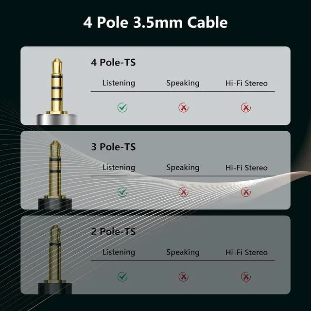 Package contents: 39.3 inch / 3.2F t 3.5 mm stereo 2 pole Male jack connector replacement audio cable.
