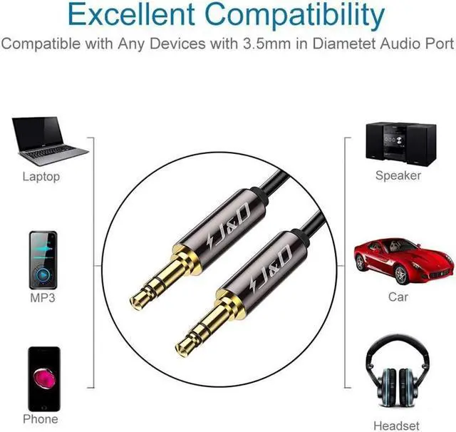 [Easy Connection] Connecting your smartphone laptop or PC with a 3.5 mm jack output to a device with 3.5 mm jack inputs such as speakers mixing desk and so on. [Excellet Sound] Dual Shielding Corrosion-resistant Gold-Plated connecters making the sound signal transmits with minimal signal loss. [Composition] 3.5 mm 1/8 Male to 3.5 mm 1/8 Male[Durable] Copper Shell protect the cable from harsh installation where the cable is tugged across sharp edges[Warranty] 1-month hassle free return and 18-month limited warranty (free replacement).