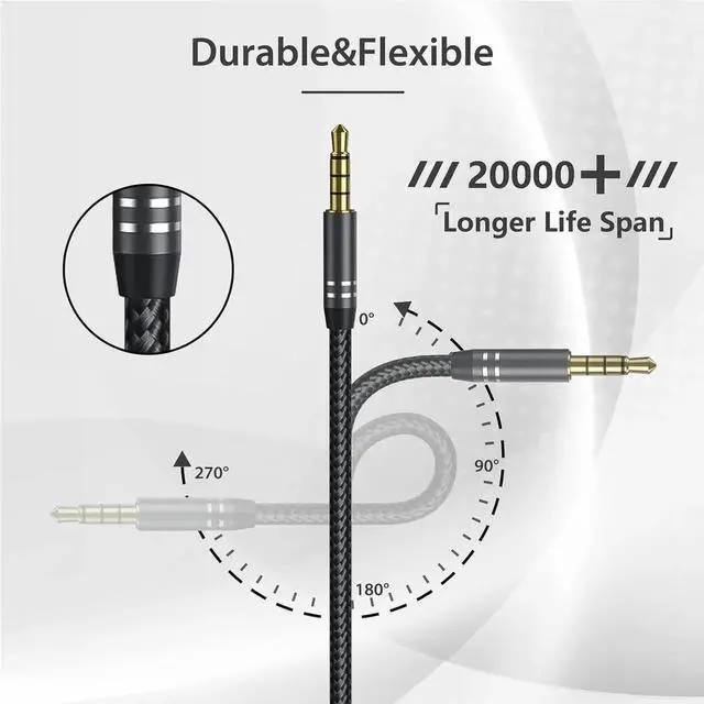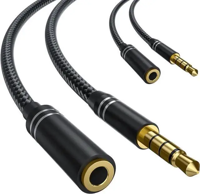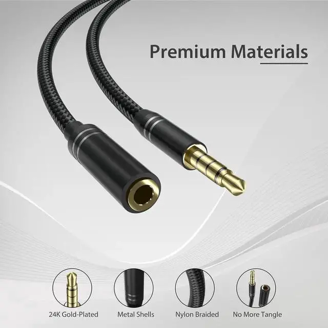 2 Pack 3.5 mm Headphone Extension Cable (4Ft/ 1.2M ) 4 Pole Hi-Fi Stereo Sound Audio Cable Nylon Braided Male to Female AUX Cord Auxiliary Extender for All 3.5 mm Enabled Devices - Black