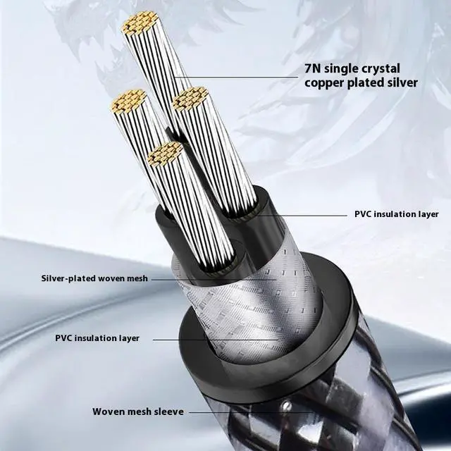 With such a listening experience, music is no longer abackground, but becomes part of the living in the guesthall. Whether it's a joyful time at family gatherings or aleisurely afternoon enjoying alone, the 7n single crystalcopper silver-plated audio cable can perfectly blendmusic and the environment. Its presence makes everynote full of life power, stimulates the mood andatmosphere of the space, and fills every corner of thehome with stories and warmth.