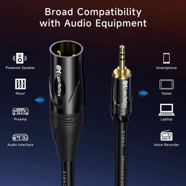 Versatile 1/8 to XLR Male: The unbalanced Male XLR to 3.5mm cable connects audio devices with a 3.5mm stereo output (smartphones, MP3 players, tablets, laptops, voice recorders) to the XLR input on mixing consoles or powered speakers. Perfect for musicians, DJs, and audio enthusiasts looking to link a variety of devices to professional audio equipment.