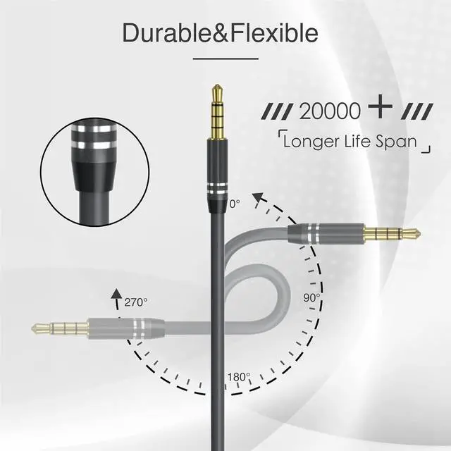 UNIVERSAL COMPATIBILITY - JESELRY 3.5 mm audio extension cable perfectly compatible for PS4 headset Car Tablet Laptop Smart phones MP3 Player Headphones Speaker and any 3.5 mm port audio-playing devices. SUPPORT MICROPHONE FUNCTION - The 4 pole Hi-Fi stereo headphone cable (Tip Ring Ring sleeve) not only support audio transmission but also can be connected to a microphone which you can listen and speak at the same time. Unparalleled Sound Quality - Auxiliary cable with 24K gold-plated oxygen-free copper core and dual shielding which could provide maximum's conductivity and durability transfer high purity audio signal. Offer clear and stereo sound to your devices.