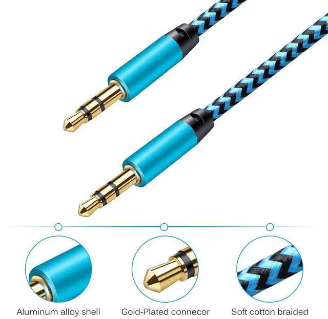 [Universal Compatibility] - Fits all 3.5 mm audio and aux ports. Play audio from any phone tablet iPod laptop MP3 players Walkman Discman or other media-playing device on your headphones Hi-Fi car stereo radios portable bluetooth speakers and wireless audio receivers. [Premium Sound Quality] - This Audio Cable built with the same grade materials as premium headphone brands. 24K gold-plated contacts ensure the cleanest sound experience possible. Gives your music a depth and balance that keep your daily soundtrack alive and it eliminate signal loss. [Incredibly Durable] - The braided exterior housing the multi-layered inner core provides resilience to the multiple bending that may occur during use.