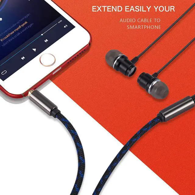Audio CABLE EXTENDER: Perfect for lengthening a device connection when existing cables are too short avoiding the possible damage of the Aux ports of your phone or car due to repeated plug &unplug and you can keep the Aux ports at the desktop or anywhere you want. The combination of gold-plated connectors corrosion-resistant bare copper conductors and foil & braid shielding provides superior cable performance and error-free audio transmissionImportant