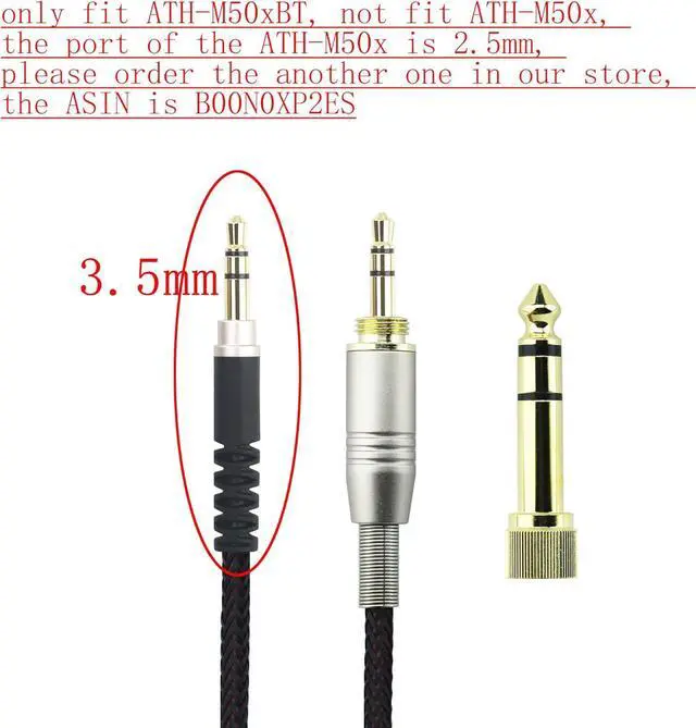 Braided Tangle-Free cableJack: 3.5 mm Male & 6.35 mm adapter to 3.5 mm MaleThe 3.5 mm end on this cable is compatible with Audio-Technica ATH-M50xBT ATH-AR3BTBK ATH-SR50BT ATH-ANC9 ATH-ANC7B ATH-SR5BTBK ATH-SR6BTBK ATH-S700BT ATH-WS660BTBRD ATH-WS990BT headphones