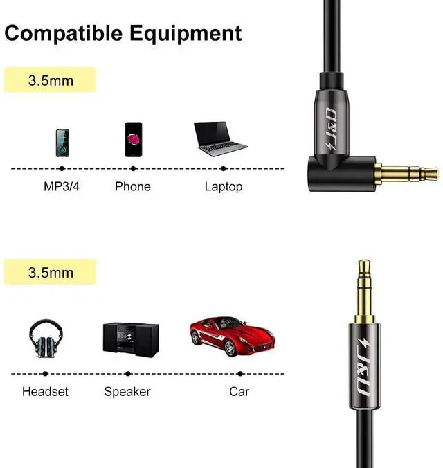 Easy Connection: J&D 3.5 mm Audio stereo cable 90 degree easily connect your 3.5 mm audio equipped device Galaxy MP3 Player or tablets to your car speakers or home stereo; Compatible with any devices with standard 3.5 mm jack audioRight