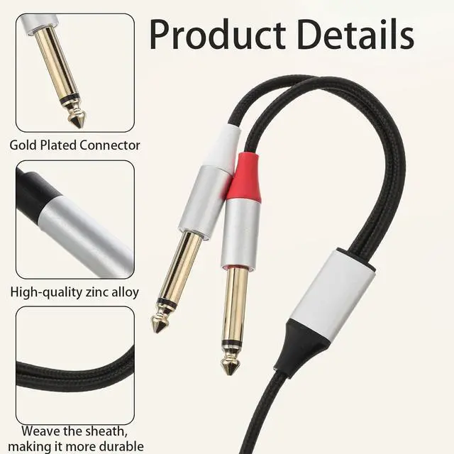Seamless Connection: Easily connect devices with 3.5 mm jack outputs to mixers amplifiers and home theater systems with dual 6.35 mm jack inputs using this versatile cableSuperior