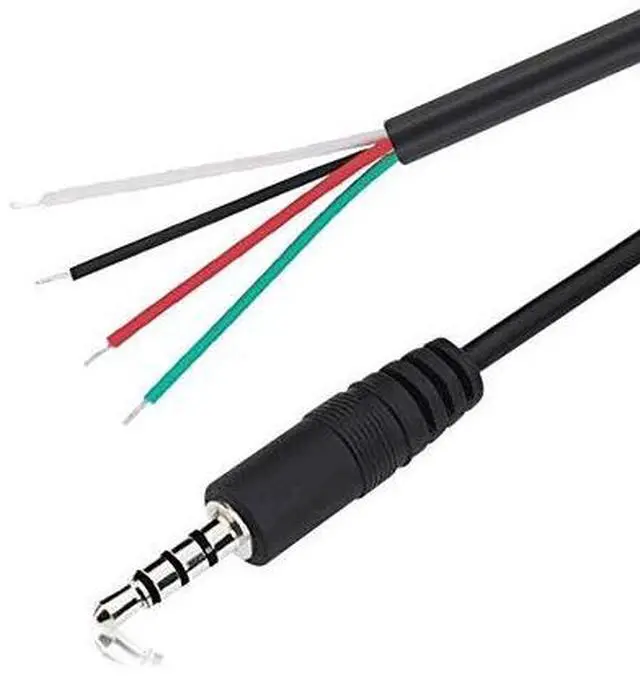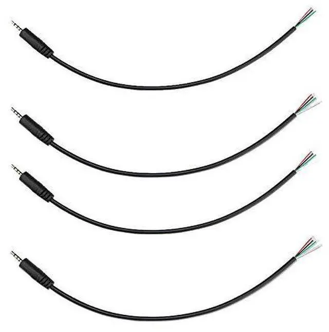 4 Pack 12in Replacement 3.5 mm male plug connector to bare wire audio cableRepair cable for broken headphone microphone speakersPIN 1 - red wire is the left channel; PIN 2 - white wire is the right channel; PIN 3 - green wire is mic; PIN 4 - black wire is groundEasy to install. Perfect for green hand.