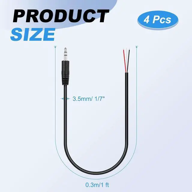 Package List: 4 Pcs x Male Jack to Bare Wire.