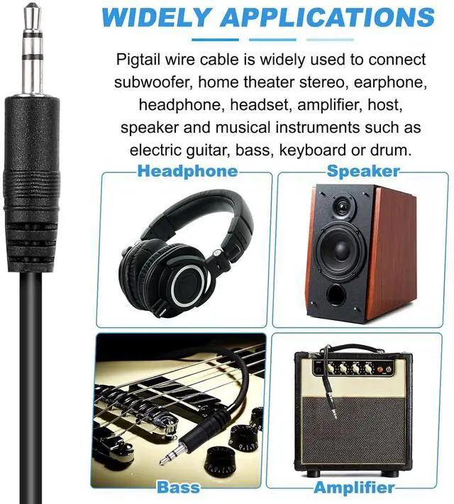 Application: Pigtail wire cable is widely used to connect subwoofer home theater stereo earphone headphone headset amplifier host speaker and musical instruments such as electric guitar bass keyboard or drum.