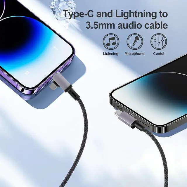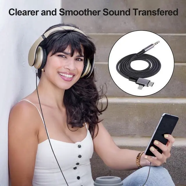 Upgraded VersionThis Lightning and USB C to 3.5 mm Auxiliary Cable easily connects your Type C and Lightning devices to car stereo home stereo speakers headphones or any device with a standard 3.5 mm audio jack or auxiliary input port allowing you to listen to music freelyLossless Sound Quality TransmissionUSB C and Lightning to 3.5 mm Auxiliary Cable adopts advanced DAC smart chip providing high-definition audio powerful noise reduction function high-fidelity stereo audio output and the clearest sound experience you can get higher fidelity sound from it. Flexible DesignThis auxiliary cable can withstand 15 000+ bends and has a service life several times longer than most auxiliary cables.