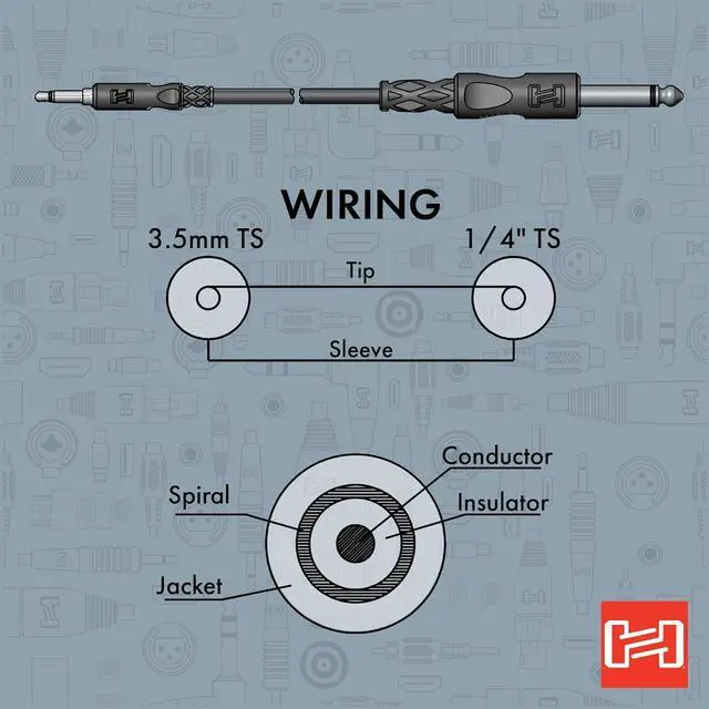 Essential Mono Interconnect: Facilitates connections between devices with 3.5 mm TS and 1/4 TS mono jacks.