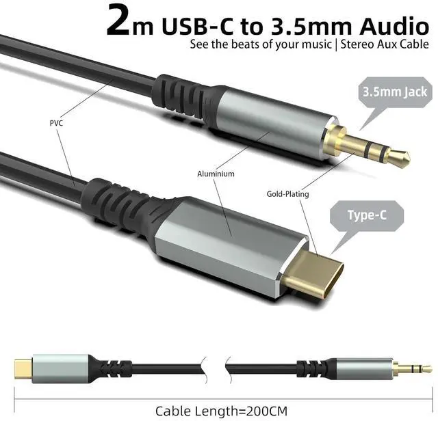 SpecificationUSB C to 3.5 mm audio cable length: 6.6FT
