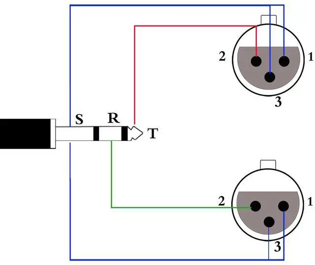 This xlr to 3.5 mm cable is designed to connect two microphones (left channel Right channel) with XLR outputs to a mini stereo phone input. It is ideal for connecting pro mics to digital cameras video cameras tape recorders and other professional audio equipment with 1/8 mini-stereo jacks. The XLR connectors are color-coded Black (Left Channel) and Red (Right Channel) It splits closer to the XLR ends the distance to the split point is about 20 inches/50cm. The 3.5 mm plug is a standard 3 pole (2 rings and a tip) connector This won't work on a Smartphone that has a 4 Pole TRRS port.