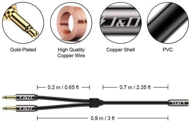 Sound: Dual shielding corrosion resistant gold plated connecters making the sound signal transmits with minimal signal lossComposition: 3.5 mm 1/8 inch Female to 2X 3.5 mm 1/8 inch