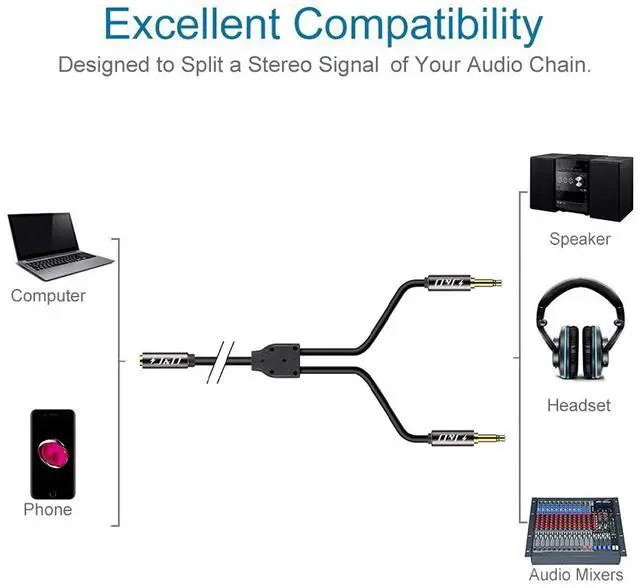 Easy Connection: Allow you to go from a 3.5 mm stereo connection to a left/right audio 3.5 mm mono connectionExcellet