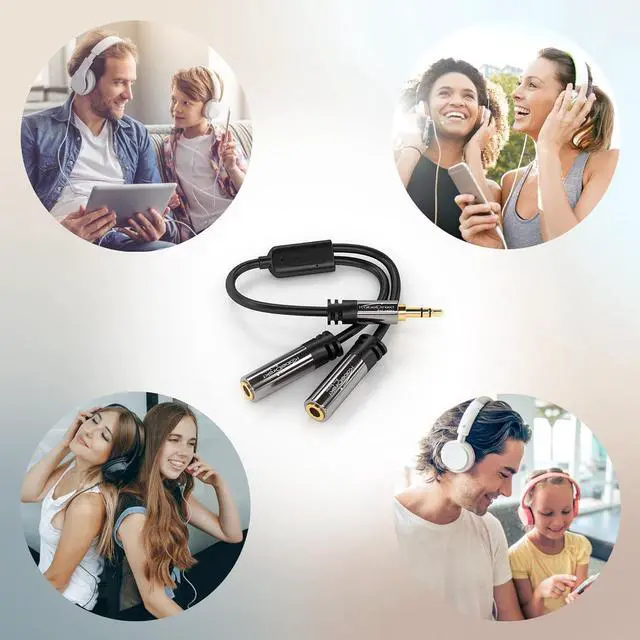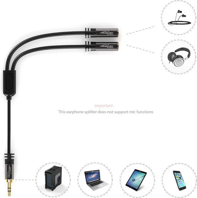 Double the fun: The audio splitter allows you to connect two sets of headphones to a single 3.5 mm headphone jack such as on a smartphone iPad or laptop so you can enjoy music or movies togetherPrecision build quality: First-class materials gold-plated connectors and break-proof metal connectors offer incredible connectivity and durability. And thanks to the optimized connector design your smartphone case can stay onIMPORTANT: While you can connect two pairs of headphones or headsets to this 3-pole Y cable for audio playback headset microphone use is not supported36 months manufacturer warranty